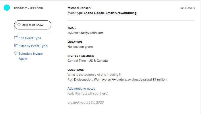 To which Jansen then clicked the “HERE” link and went ahead and scheduled a call with me directly.